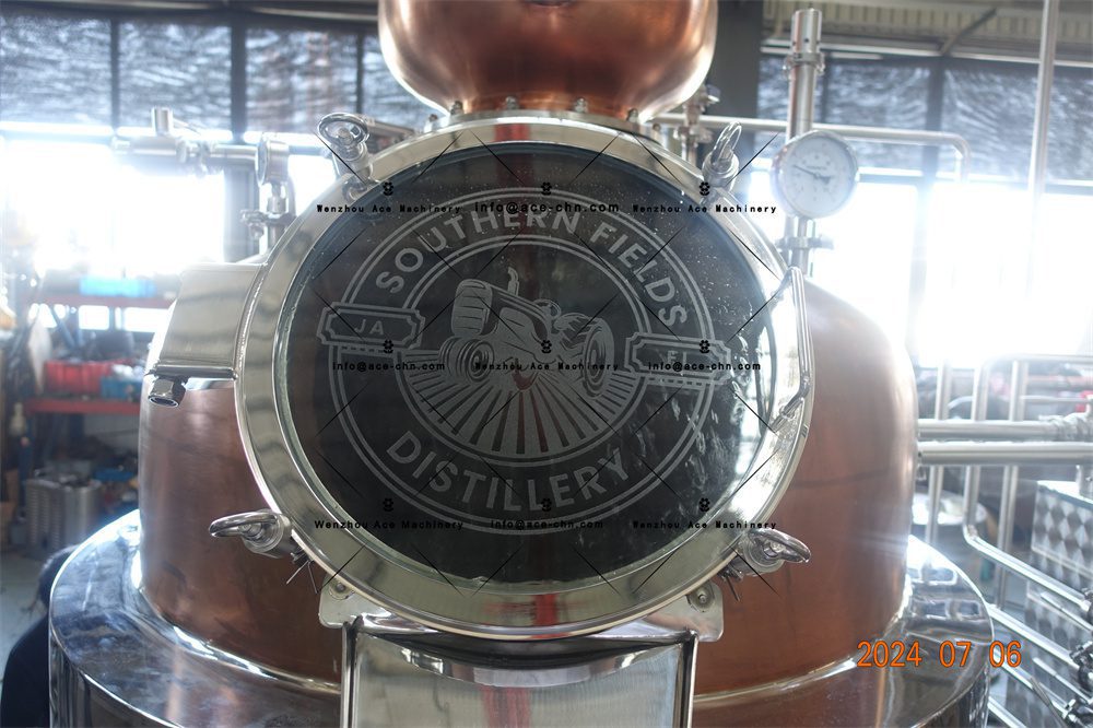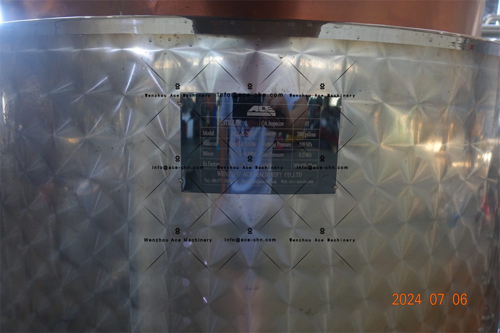- Materiales: Acero inoxidable para la columna de reflujo y cobre para el casco