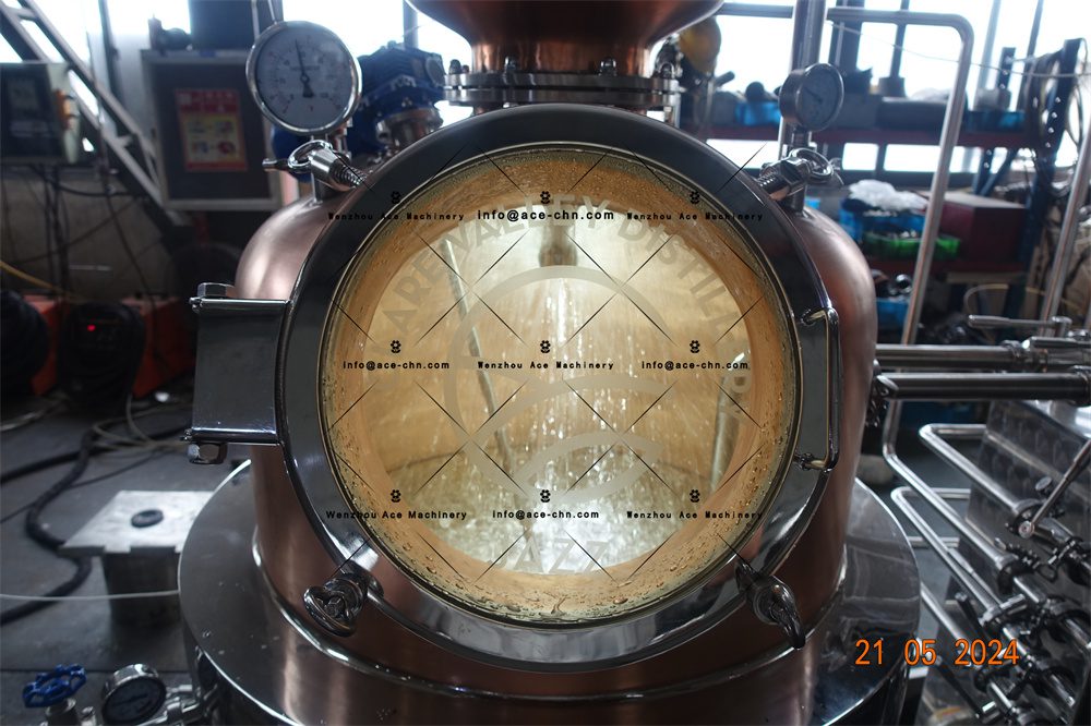 Este alambique está hecho de cobre puro de alta calidad, que tiene buena conductividad térmica y resistencia a la corrosión, y puede transferir el calor de forma rápida y uniforme para garantizar que el licor se caliente uniformemente durante el proceso de destilación, evitando el sobrecalentamiento localizado que puede degradar la calidad del licor. Al mismo tiempo, el cobre también puede eliminar eficazmente las impurezas y los olores del licor, garantizando que el moonshine producido sea puro y suave.